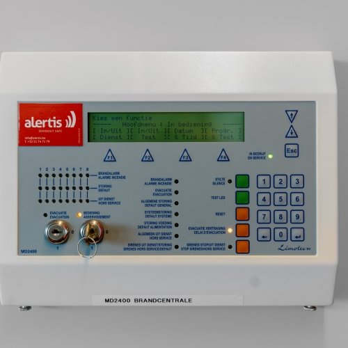La détection incendie se compose de 10 panneaux de contrôle Limotec MD2400 en anneau à jetons via fibre optique, 223 détecteurs, 88 boutons poussoirs et 6 faisceaux OSID.